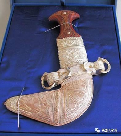 由阿曼赠予的蓝色天鹅绒珍贵礼盒装弯曲匕首,
