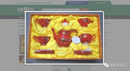 当然,还有我们中国的赠礼——一套精致的中国红瓷茶具。目前的起拍价为47欧元(约合400元人民币),