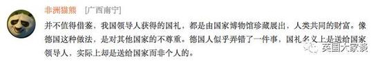 有人劝德国参考一下中国对待国礼的方式——将国礼放入国家博物馆,这样更显的对他国的尊重。