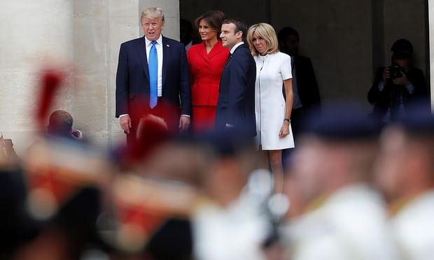 但偏偏,外交理念南辕北辙的两人,却私交甚秘。根据白宫网站公开的通话记录,两人至少一个月能通话1-2次。受马克龙邀请出席法国大阅兵的特朗普,在观众席中显得难得的兴高采烈,挺直身子前倾着,想要看清检阅的新型武器型号。美国Politico网站猜测,两人的“大男子主义”性格或是使其惺惺相惜的原因,称他们对权力、对专断统治的热爱让他们相互理解。