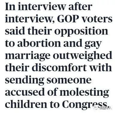 当然,这些各方声音都不如阿拉巴马的选民民意力量大。根据PBS的采访,当地的摩尔选民表示,支持堕胎权和同性合法婚姻的民主党,太左。他们认为摩尔的性丑闻属于“故事(stories)”,他们选择相信摩尔本人。2016年大选,尽管被16位妇女指控性侵,川普仍然在阿拉巴马领先28%,多少说明阿州选民在这两方理念上权衡后的选择立场(点击链接)。