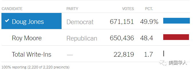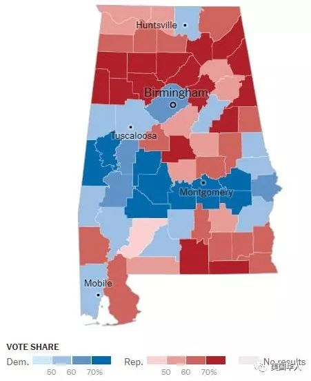 1。 阿拉巴马州参议员选举,民主党候选人琼斯以1.5%的优势获胜!2。 这是深度保守州阿拉巴马25年来首次选出民主党国会参议员