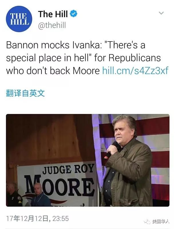 班农把伊万卡的原话改装了一下,“不选摩尔的共和党会下地狱!”