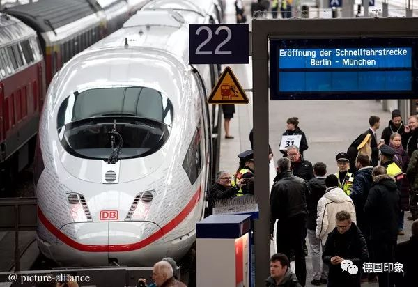 12月10日,柏林至慕尼黑高铁线路开通,首发列车正点到站,部分路段最高时速达300公里,提速后从柏林到慕尼黑的运行时间不到4小时,住在这两地的小情侣足足可以把望眼欲穿的思念减少2小时之多,德国城际铁路(ICE)迎来了速度上的新飞跃,惠民呐!