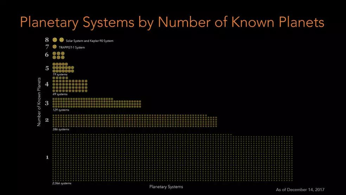 美国东部时间 12 月 14 日 13 时(北京时间 15 日凌晨 2 点),NASA 举办了一场电话会议,揭开了喧嚣多日的开普勒天文望远镜的“重大发现”,确定了距离地球 2545 光年远的开普勒 90 星系中的两颗新发现的行星——开普勒 80g 和开普勒 90i,这是人类发现的首个和我们太阳系一样的具有 8 颗行星的星系。