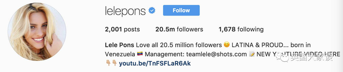 Lele Pons出生于委内瑞拉,5岁移民到美国,会西班牙语、英语和拉丁语,2012年中她发了第一条Instagram推文,照片上的她还是一个普通的小姑娘。
