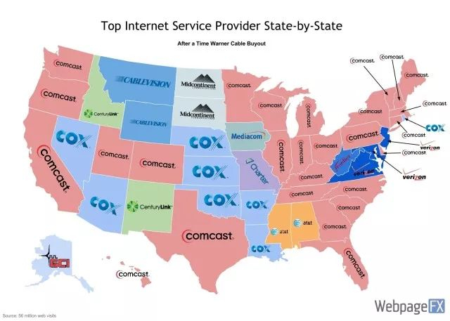 雪上加霜的是,几大巨头不断寻求并购,市场控制进一步加强。2014年2月,Comcast试图收购美国第三大互联网运营商时代华纳有线(Time Warner Cable),但最终由于司法部的介入而宣告失败。