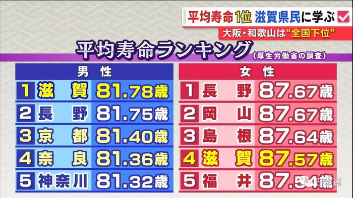 男性最长寿县为滋贺县的81.78岁,