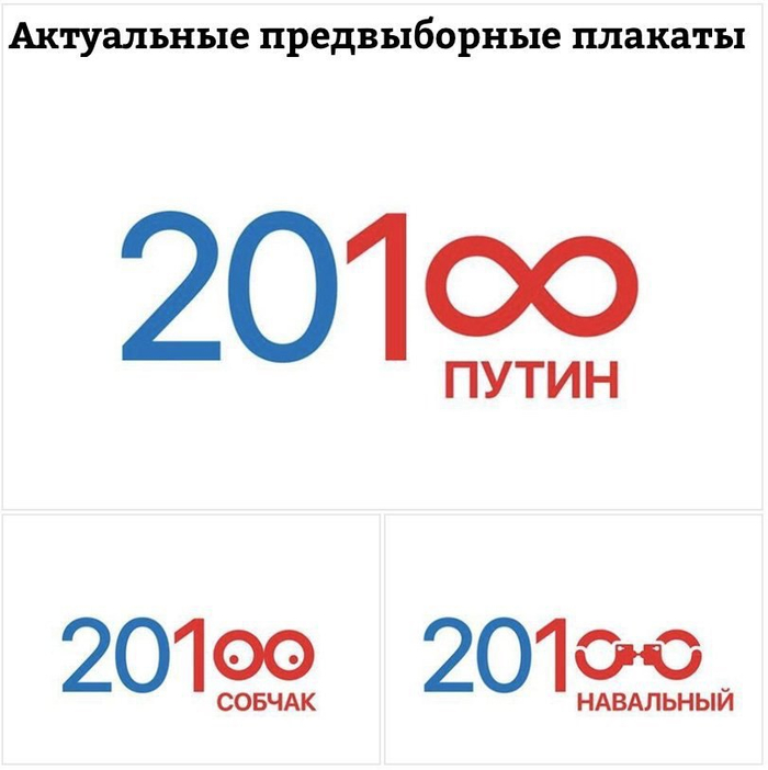 (俄网友调侃2018总统大选漫画:普京-无穷大、索布恰克-搞笑的眼镜、纳瓦利内-手铐)