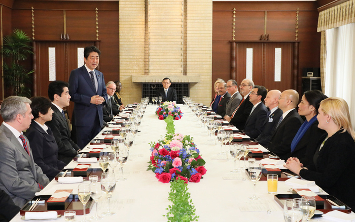 之后,他来到公邸,邀请24国精通日语的驻日大使共进午餐。安倍表示,他一直期待与各国大使直接通过日语对话,讨论日本文化。他希望,在2020年东京奥运会时,各国大使能邀请本国人民到日本作客。