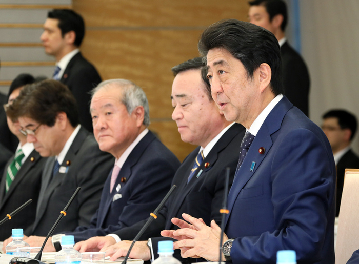 上午,安倍与海洋政策部门的官员召开了座谈会,讨论“海洋基本计划意见书”,并会见了国家安保领域4个部门的主要负责人。