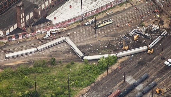 (费城火车脱轨事故现场照片)
