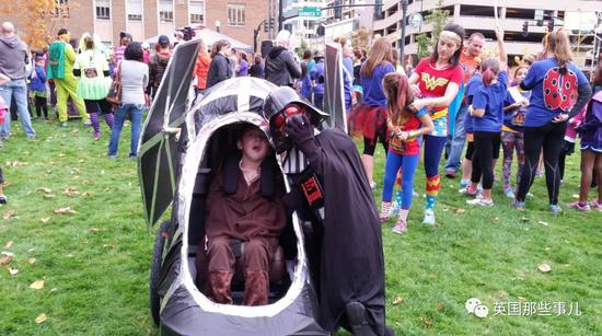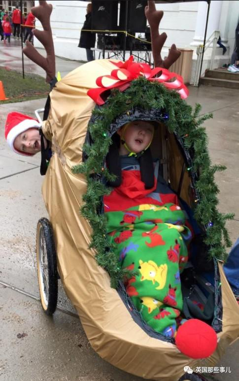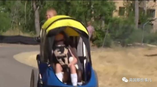 Noah还经常把弟弟的小车装饰一番,带着他去街上散步,