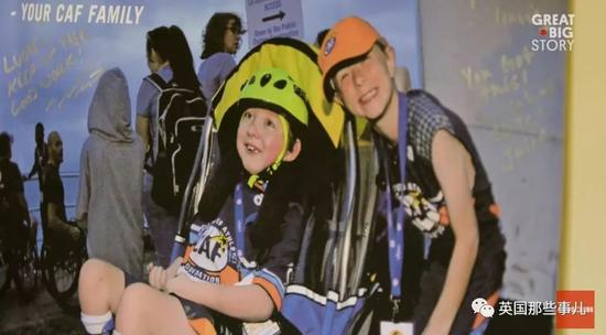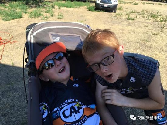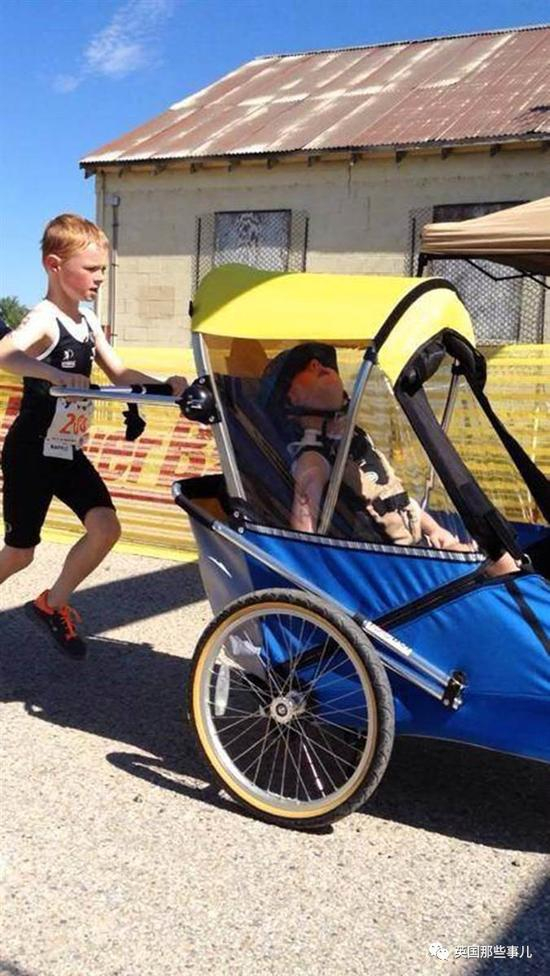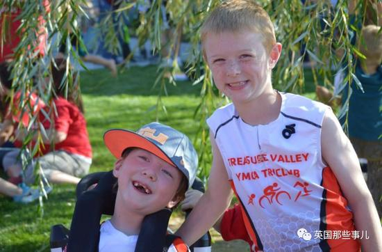 弟弟不能跑 哥哥就带着他一起参加铁人三项