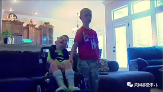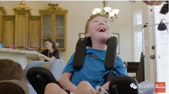 Lucas患有平脑症,这辈子都无法说话、行动、自己吃饭。。。只能待在轮椅里。
