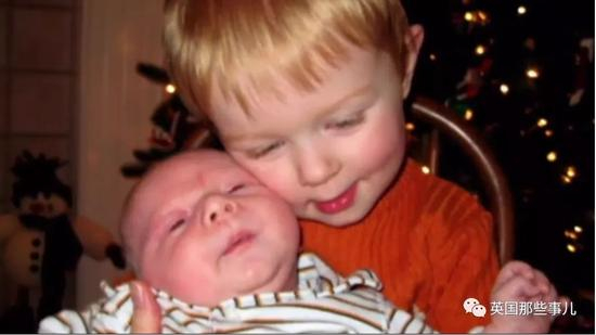 Noah拥抱着弟弟,