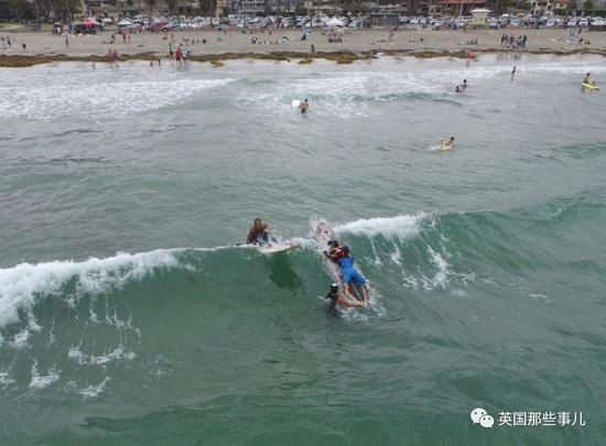 和Lucas一起参加冲浪课。。。。