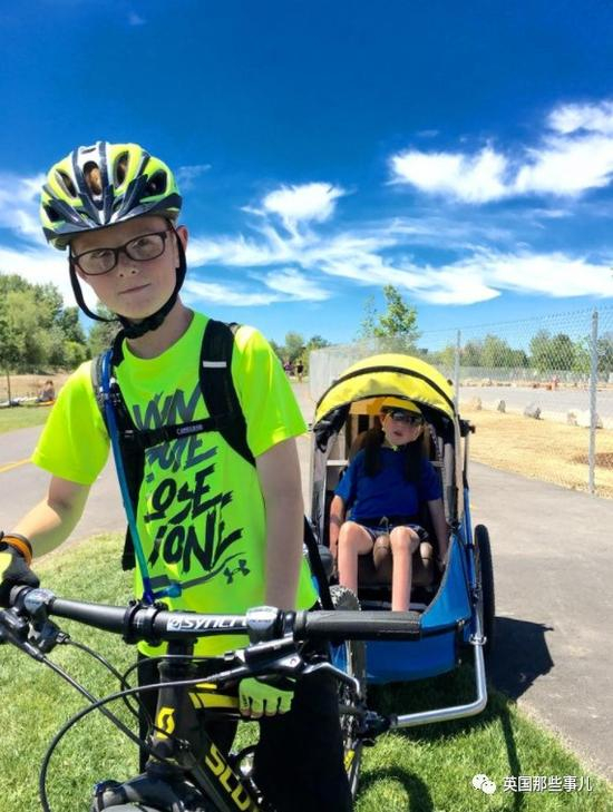 当天气温37度,Lucas体重50磅(22.7公斤),加上轮椅是40磅(约18公斤),这对8岁的Noah来说,很吃力。。。