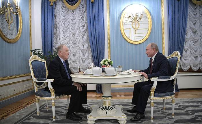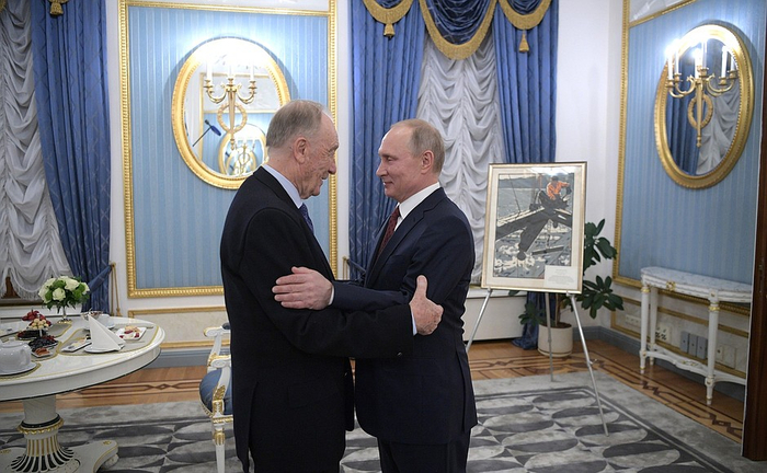 16日, 俄罗斯总统普京在克里姆林宫款待作曲家罗季翁·谢德林,庆祝其85岁生日,并向罗季翁·谢德林授予荣誉勋章。