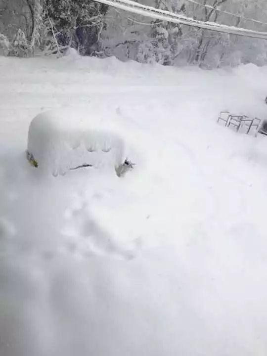 图中凸起的部分,其实是一辆车。如图所示,雪基本已经没过车轮。