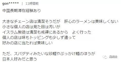 他介绍说,“兰州拉面用的肉汤使用10多种香料和牛骨熬制而成,面是师傅拉制而成,出锅后还在碗里放上辣油和香菜等调料。”“兰州拉面比起日本拉面来偏软,汤也稍辣,但是没有油腻的浓汤,吃起来像是‘药膳’。”可以说描述得非常细致了。