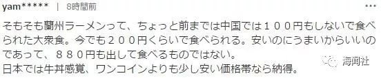 兰州拉面,以前在中国是只要100日元就可以吃到的大众食品。现在200日元也能吃到了,因为便宜又好吃所以受欢迎,拿880日元吃太不合适了。