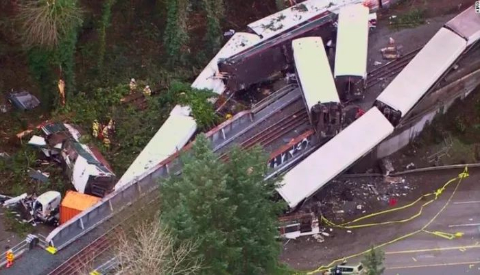 当地时间12月18日上午7点半左右,美国铁路公司的一列客运火车在华盛顿州皮尔斯县5号州际公路南向路段上发生脱轨事故。