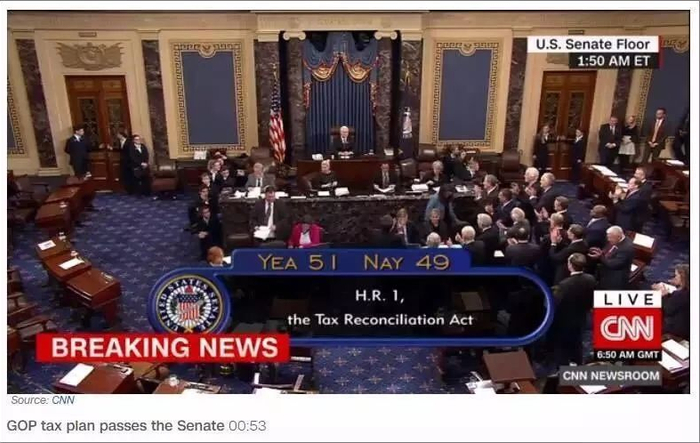 ▲ 美国参议院以51:49投票结果通过了特朗普税改的最终修改版本。