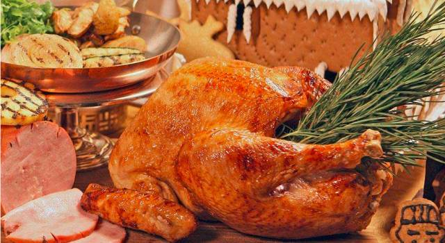 首先来看看英国!英国的圣诞大餐极为丰富,烧猪、火鸡、圣诞布丁、干果馅饼等。据说,吃圣诞火鸡这个习俗,已有300多年历史,一般的英国家庭都会在家自行烹调火鸡,将大量的蔬果如甘笋、西芹、洋葱、栗子等,塞进十来磅的火鸡肚子里,再在表层抹上多种香料,然后才放入焗炉烤。传统的圣诞布丁也非常甜,吃一小角已心满意足!