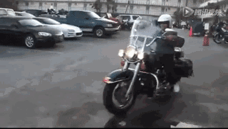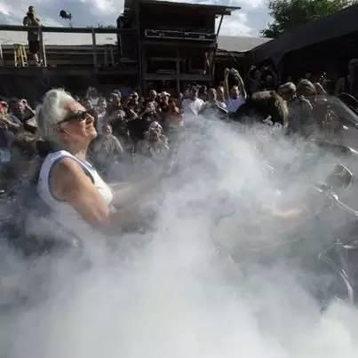 她的摩托车技也是相当了得!下面正在疯狂烧胎的哈雷奶奶,把年轻人都看得目瞪口呆!