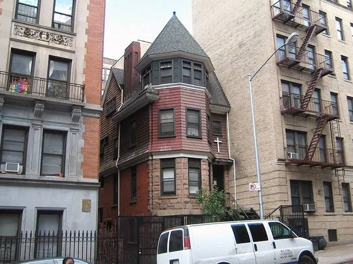 在美国,这套哥特式的建筑也一样,现在被夹在了两栋大楼之间。