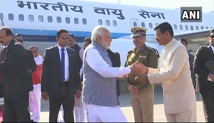 当地时间上午9点30分左右,莫迪乘坐的专机降落在古吉拉特邦第一大城市艾哈迈德巴德机场。在从机场前往该邦首府甘地纳格尔的路上,莫迪向路边迎接他的民众不断挥手致意。
