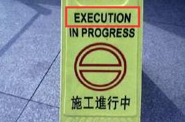 图中那句英文字面意思是“死刑执行中”,而“施工进行中”正确译法是“under construction”。