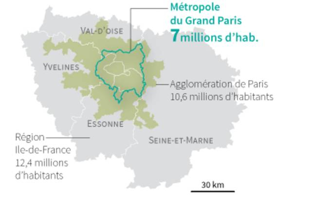 “大巴黎大都会”(LA METROPOLE DE GRAND PARIS,MGP)于2016年1月1日正式诞生,目标是在消除地方间不平等,并在“世界城市”竞争中展示巴黎。事实上,2007年时任法国总统萨科齐就呼吁在首都“重组权力”,他强调“巴黎是欧洲唯一没有大都市权力的大都市区。项目还包括建造“大巴黎快线”(Grand Paris Express)交通网络。
