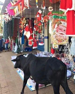 街头肆无忌惮溜达着的牛,和销售圣诞物品的小店形成一种莫名和谐又非常印度化的路线。
