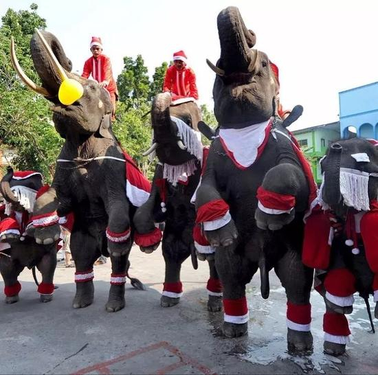 还有大象,也被感染上圣诞氛围。