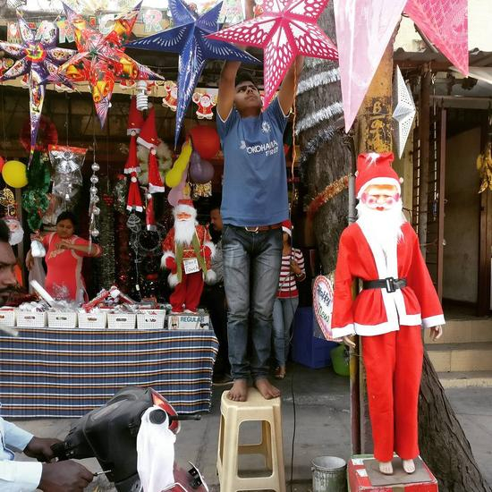 从印度北部到印度南部,有关圣诞节的装饰或者圣诞树也出现在各个角落。
