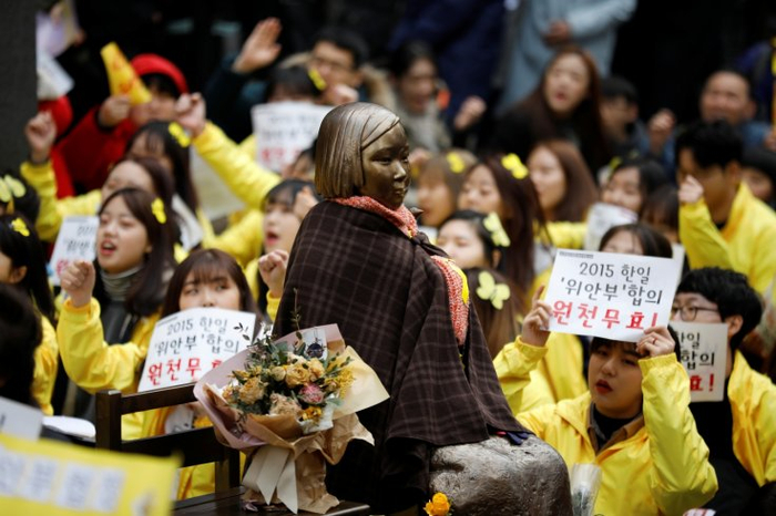 但尽管日韩同意在朝核议题上加强合作,慰安妇议题造成的双边关系隔阂仍难弥补。两人在符拉迪沃斯托克的会面中,又就慰安妇家属向日本求偿一事提出异议。安倍称,战后赔偿都已得到解决,安倍与朴槿惠政府已在2015年达成慰安妇问题协议。而文在寅回应,抛开国家层面,个人有权利向日本政府提出民事诉讼并要求赔偿,同时表示朴槿惠政府签署的慰安妇问题协议,并未得到韩国民众广泛支持。