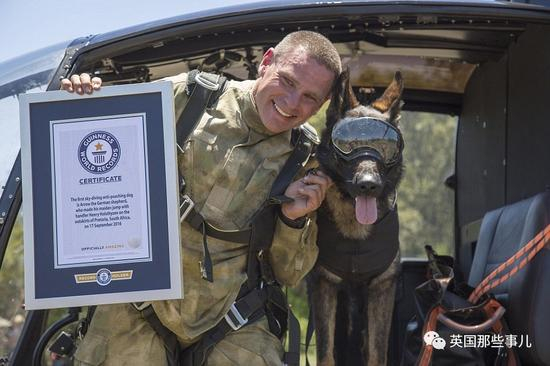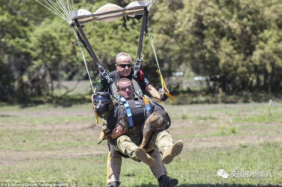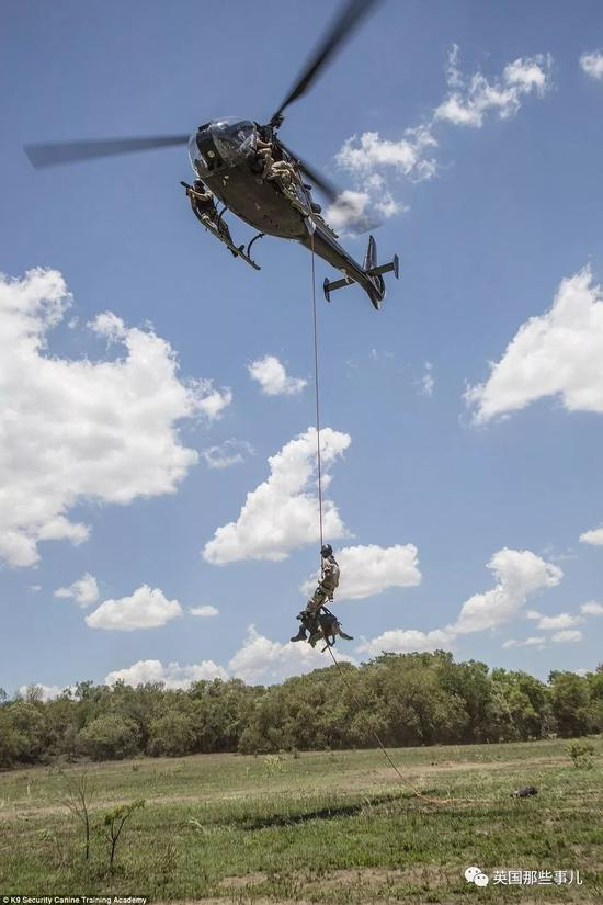 然后由人类搭档抱着它们,从直升机上纵身跳下。