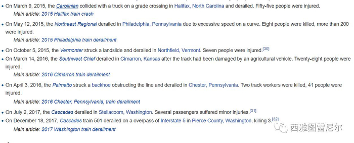 Amtrak最近三年的事故