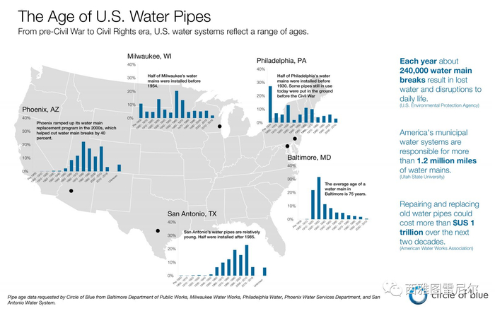 美国几个大城市的供水管网年龄