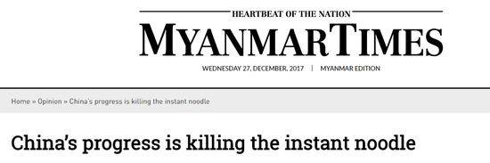 《缅甸时报》:中国的发展扼杀了方便面产业