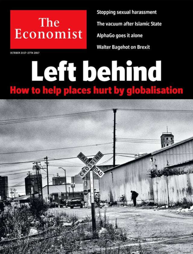 十月刊封面文章《落在后面》认为,若不认真解决欧美区域经发展不平衡的问题,会加剧反全球化浪潮和民粹主义的抬头。造成不同地区经济发展不平衡有很多原因,其中两点最为突出。首先是现代经济鼓励集中,规模变得日益重要。问题是,这种规模经济会催生为数不多的“超级公司”,它们聚集在越来越少的“超级城市”,其他地方都成了落在后面的穷乡僻壤。