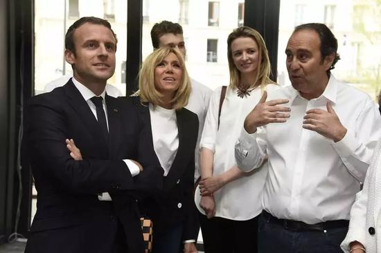 从左至右分别为马克龙夫妇、路易威登副总裁达芙妮·阿尔诺和尼尔