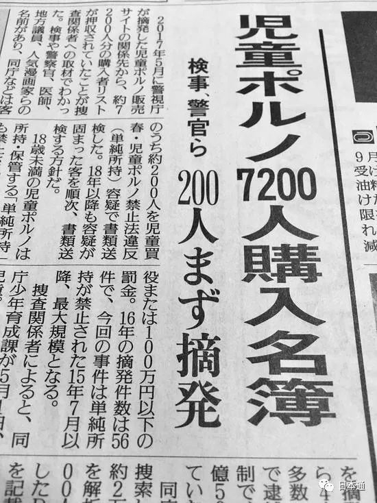日本警视厅近日以违反儿童买春、儿童色情禁止法相关条例嫌疑,将7200人名单中的约200人函送检方。
