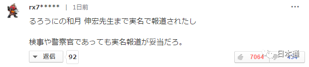 网友1:《浪客剑心》的作者和月伸宏被实名报道了,即便是检察官、警察,也该被实名公开才合适吧。