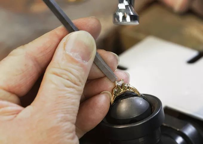 工匠耗费时日将黄金捶打成轻薄精致、质地柔软的金箔,这些如丝如锦形态的金箔在金匠灵动的指间下,沿着宝石本来的轮廓,流畅地完成每一次起承转合的推压,然后,抛光打磨、精心擦拭,一件昆丹镶嵌后的宝石首饰就传奇问世了,而宝石之美也因为经过昆丹镶嵌工艺的加工而流传千秋万代。