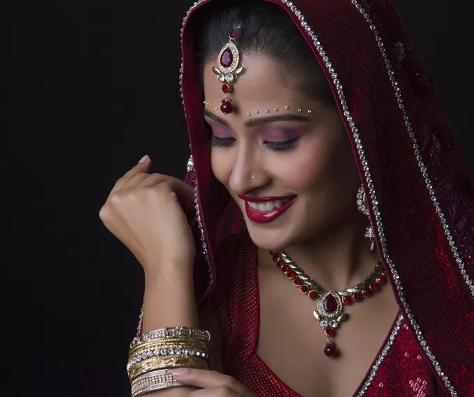 印度女性对美的追求,熔铸在风情万种的首饰、在色彩华丽的沙丽、在眉间点着吉祥痣、在身上绘就斑斓的海娜里,种种装扮,让印度女人变得美艳不可方物。