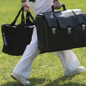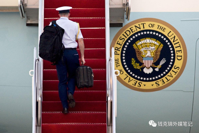2010年,一名美国军官提着“核按钮”登上总统专机(图片来源:businessinsider.com)