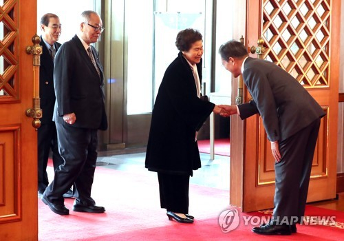 当地时间5日中午,文在寅还在青瓦台迎接大韩老人会会长团的拜访,文在寅与他们一起共进午餐。